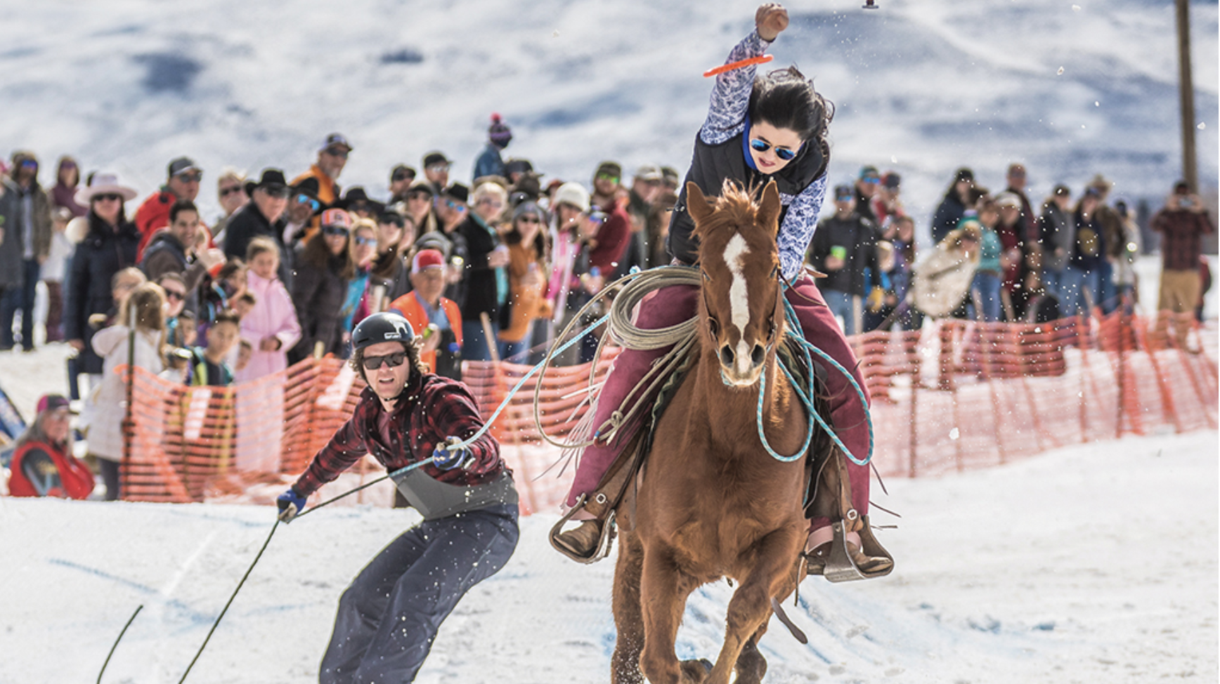 In the 1990’s Kurtis brought his experience of skijoring from his hometown of Red Lodge Montana where the skijoring finals were held. What we are experiencing here today started as a small group of local cowboys and skiers holding the first local skijoring competition. The event was held in Fairfield for 3 years and then moved over to the valley. The popularity of the sport grew, along with the size of the jumps, which at one point were almost 6’ high. For obvious reasons, the jumps came back down to what we see today.